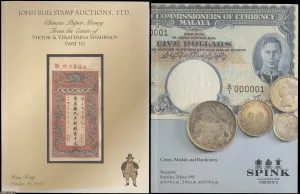 1995-2022年一箱16本纸币拍卖目录及收藏参考书,包括有多本布约翰拍卖珍藏目录、斯宾客目录、诚轩目录、中央银行关金兑换券参考书。请预览。