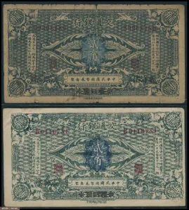 交通银行威海卫地名国币2角券2枚,其中一枚为老假票。八品到八五品。